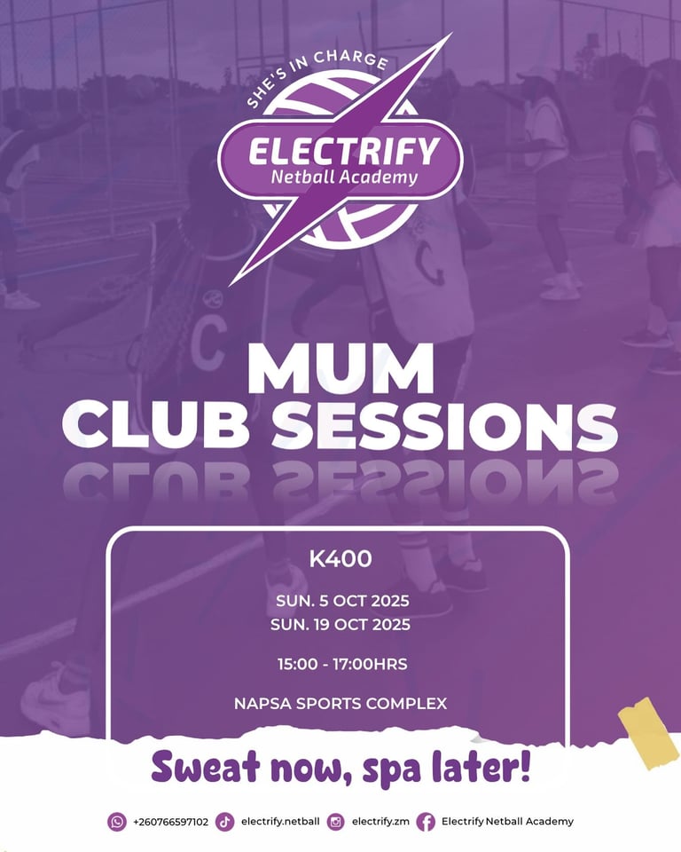 Electrify Netball Academy is a Zambian-based sports development academy dedicated to empowering girls and young women through netball. Founded by Monica Phiri, who fell in love with the game at just 8 years old, the academy provides structured training, competitive play, and mentorship to help players thrive on and off the court.